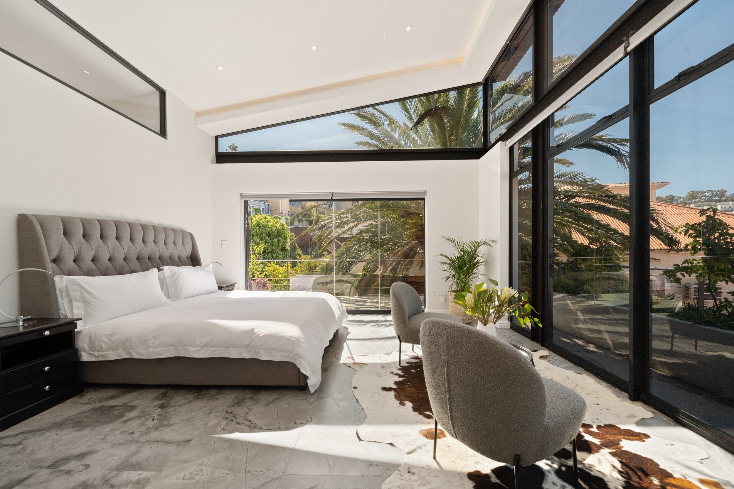 Step onto the expansive terrace, where breathtaking views of Cape Town’s iconic landmarks await. This outdoor space seamlessly blends with the interior, creating a perfect environment for relaxation or entertaining.
